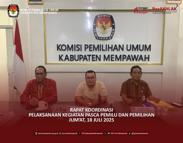 KPUMempawah-KPU Kabupaten Mempawah mengikuti Rapat Koordinasi Pelaksanaan Kegiatan Pasca Pemilu dan Pemilihan yang diselenggarakan oleh KPU Provinsi Kalimantan Barat secara daring melalui Zoom Meeting, Jumat (18/7/2025).
