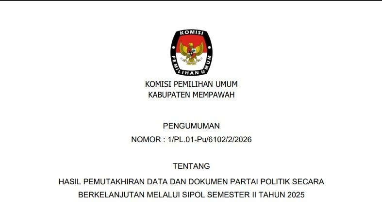 Berikut kami sampaikan Pengumuman hasil pemutakhiran data dan dokumen partai politik secara berkelanjutan melalui sipol semester II Tahun 2025.