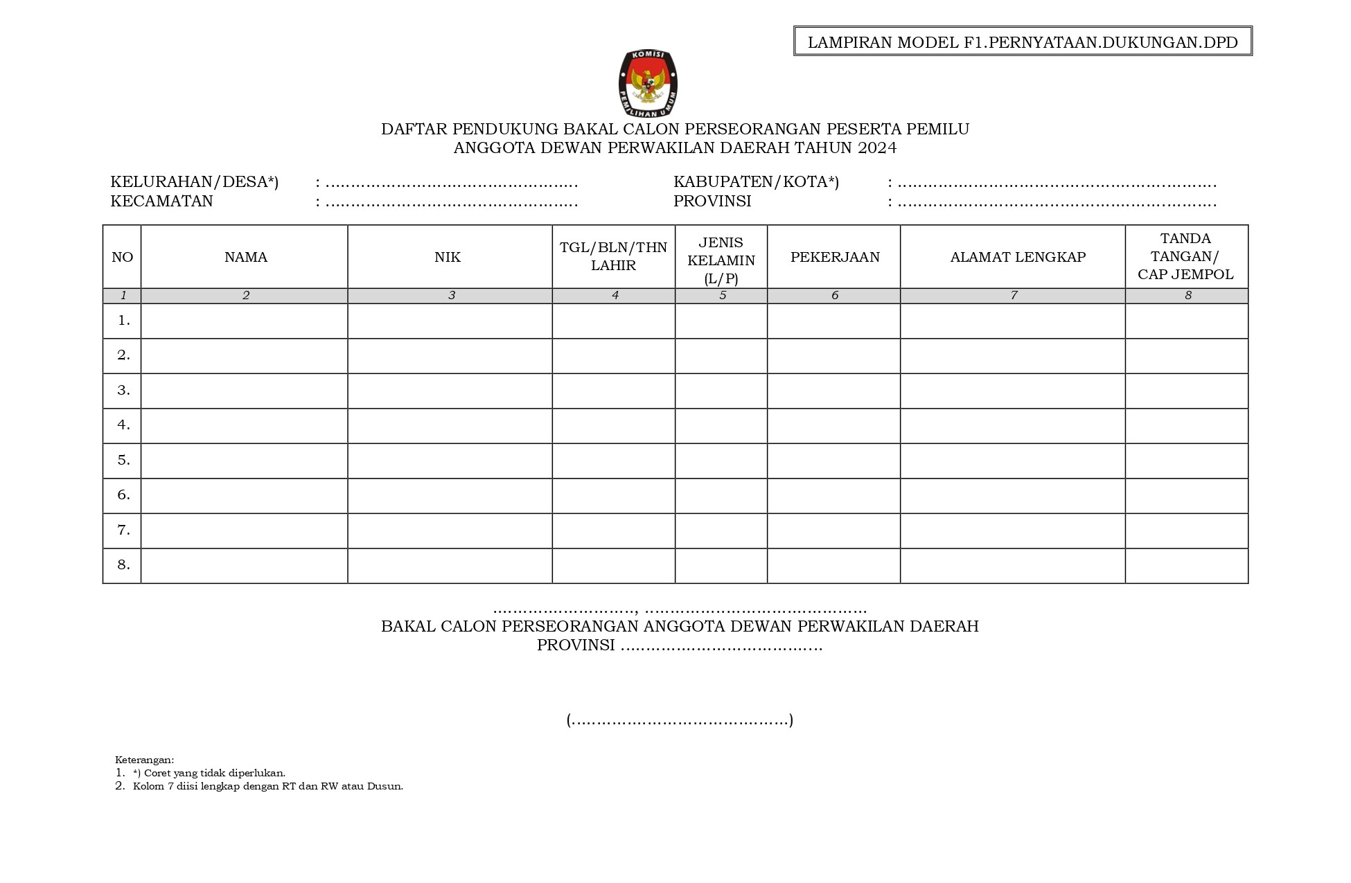 Formulir Daftar Pendukung Bakal Calon Perseorangan DPD