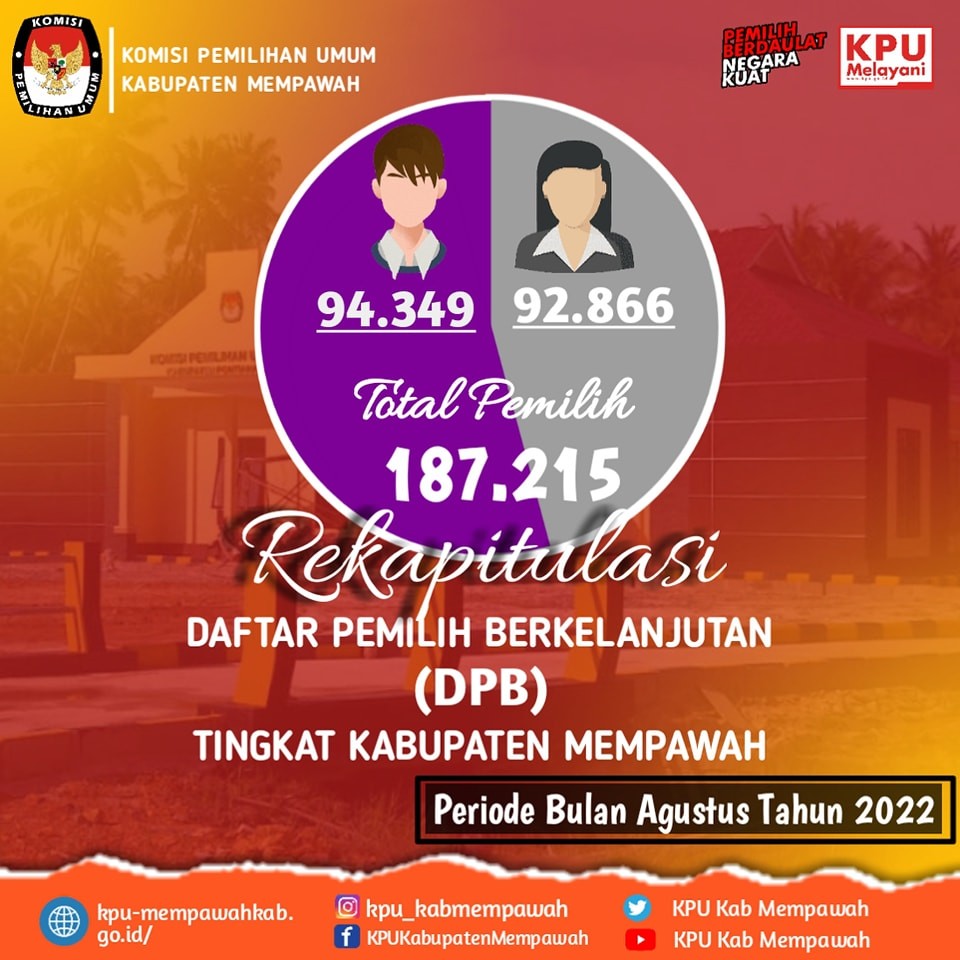 Berikut INFOGRAFIS Rekapitulasi Data Pemilih Berkelanjutan (DPB) Periode Bulan Agustus Tahun 2022 Tingkat Kabupaten Mempawah, sebagai berikut: