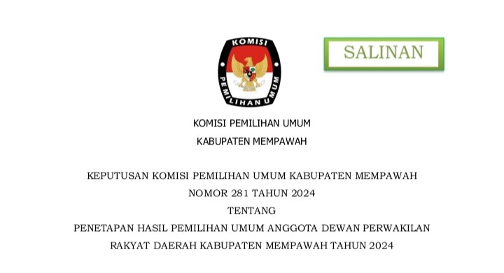 Keputusan Nomor 281 Tahun 2024 tentang Penetapan Hasil Pemilu Anggota DPRD Kabupaten Mempawah Tahun 2024