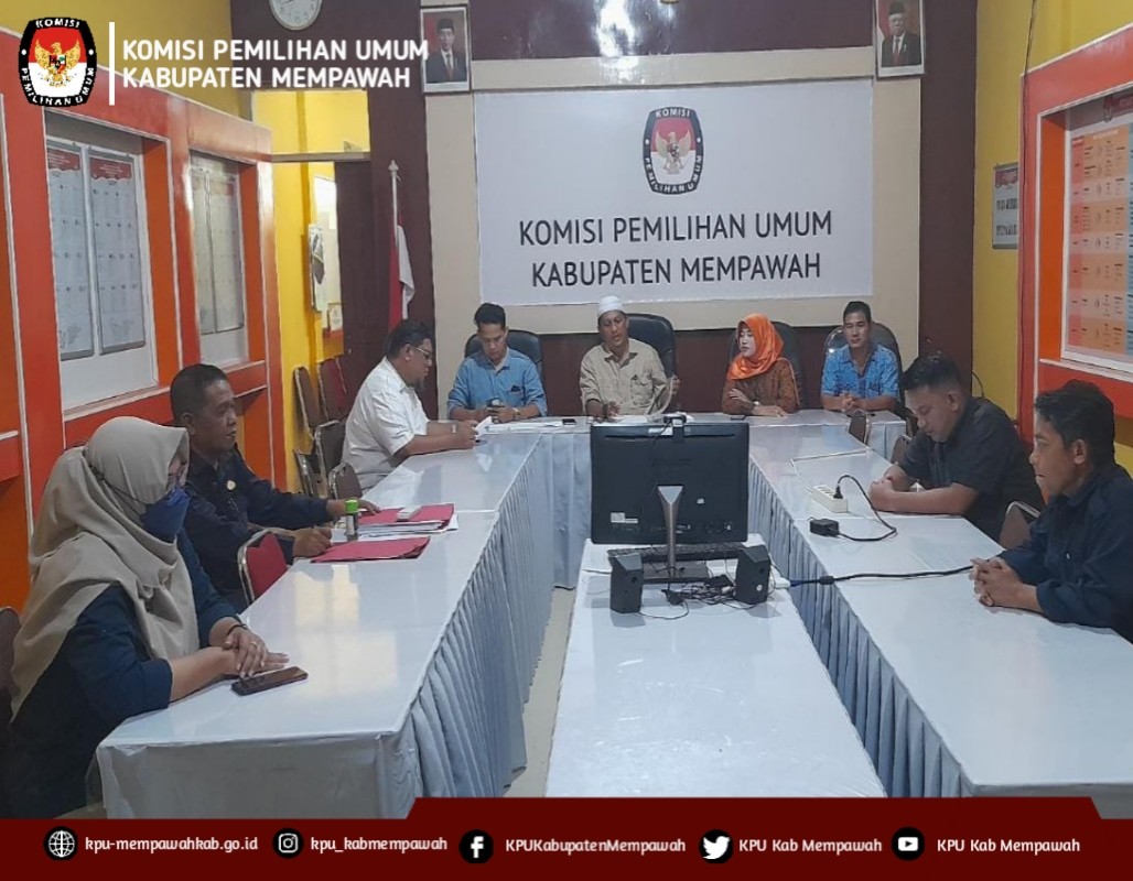 Rapat dipimpin oleh Ketua KPU Kabupaten Mempawah, Bapak Muhammad Agoes Soesanto, SH dan dihadiri oleh Komisioner KPU Kab Mempawah, dan Jajaran Sekretariat KPU Kabupaten Mempawah.