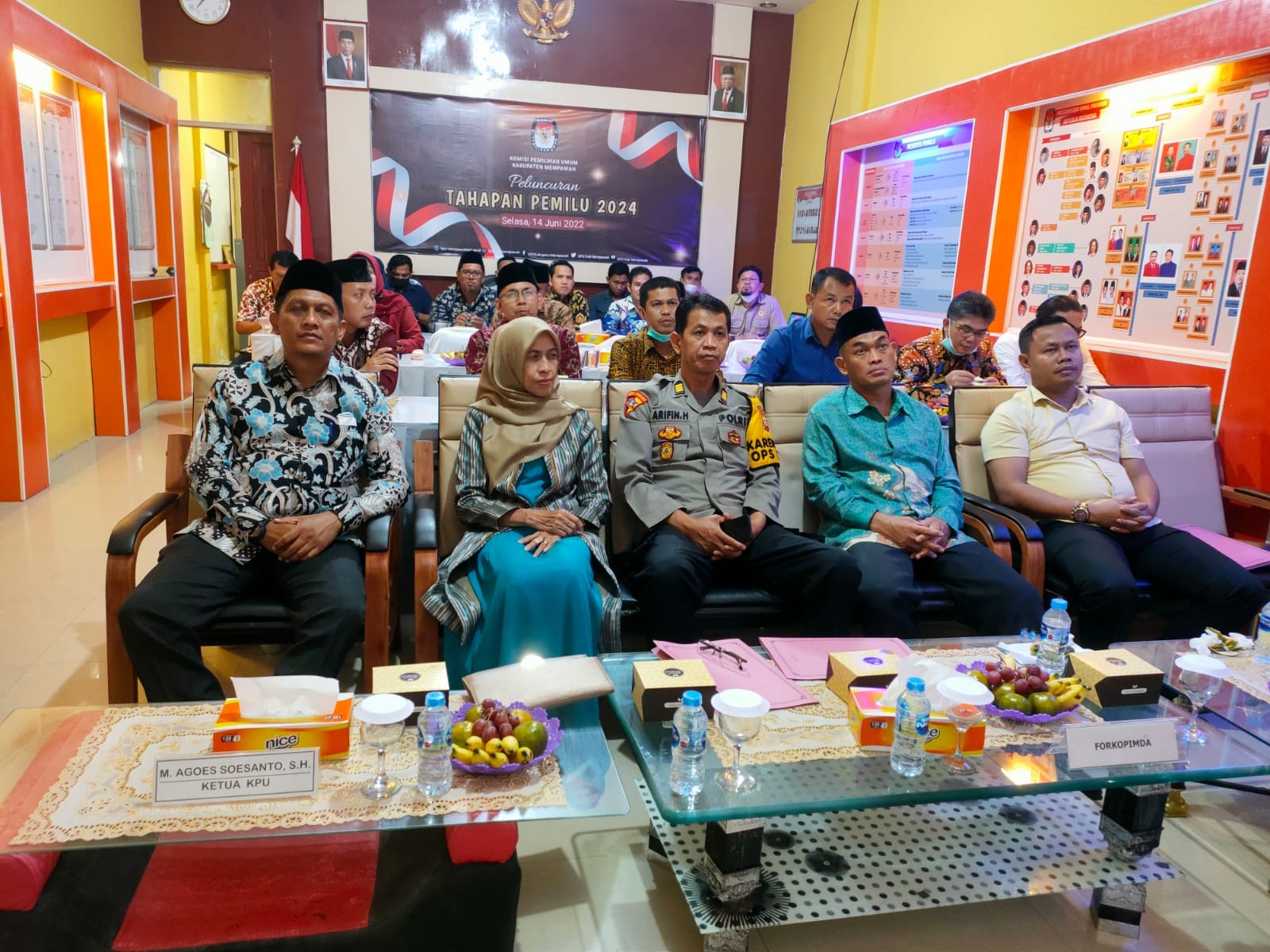 KPU Mempawah - KPU Kabupaten Mempawah menggelar acara Nonton Bersama Peluncuran Tahapan Pemilu 2024 oleh KPU RI, bertempat di Aula Kantor KPU Kabupaten Mempawah Pukul 19:00 Wib, secara daring melalui Zoom Meeting Online, Selasa, 14 Juni 2022.