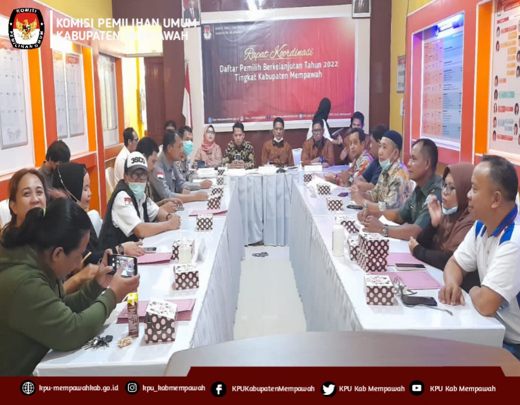 KPU Mempawah - Komisi Pemilihan Umum (KPU) Kabupaten Mempawah menggelar Rapat Koordinasi Daftar Pemilih Berkelanjutan Tahun 2022 Periode Triwulan II (April, Mei, Juni) secara luring, di Aula KPU Kabupaten Mempawah, Kamis 30 Juni 2022.