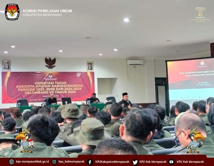 KPUMempawah-Komisi Pemilihan Umum (KPU) Kabupaten Mempawah mengikuti kegiatan Orientasi Tugas Anggota KPU/KIP Kabupaten/Kota Gelombang VII Tahun 2024 bertempat di Resimen Induk Daerah Militer Jaya/Jayakarta (Rindam Jaya) dan Dilaksanakan pada Mulai Tanggal 16 s.d 20 Juli 2024. Admin