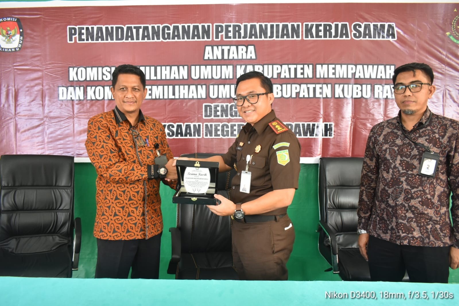 Penandatanganan dilakukan oleh Kepala Kejaksaan Negeri Mempawah, Bapak Didik Adyotomo dengan Ketua KPU Kabupaten Mempawah, Bapak Muhammad Agoes Soesanto dan Ketua KPU Kabupaten Kubu Raya, Bapak Karyadi, yang bertempat di Aula Kantor Kejaksaan Negeri Mempawah.
