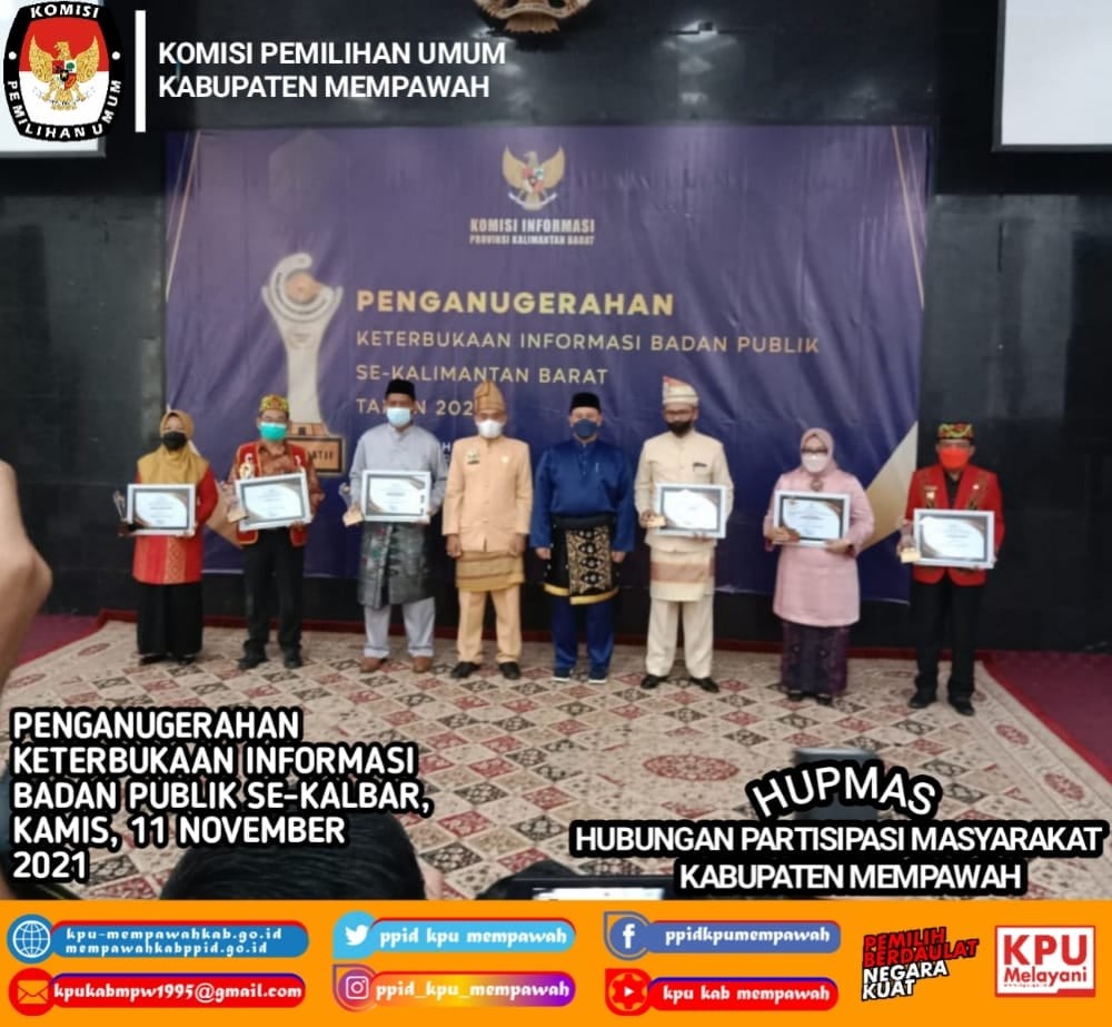 Kamis, 11 November 2021 bertempat di Balai Petitih Kantor Gubernur Kalimantan Barat, KPU Kabupaten Mempawah berhasil mendapatkan PERINGKAT KEEMPAT dari KOMISI INFORMASI Provinsi Kalimantan Barat, pada acara Penganugerahan Keterbukaan Informasi Badan Publik Se-Kalimantan Barat Tahun 2021 dengan Kategori : "Lembaga Penyelenggara Pemilu Tingkat Kabupaten/Kota Se-Kalimantan Barat".