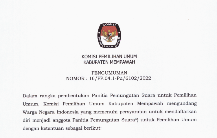 Pengumuman Dalam Rangka Pembentukan Panitia Pemungutan Suara (PPS) untuk Pemilihan Umum Tahun 2024 Lihat Disini