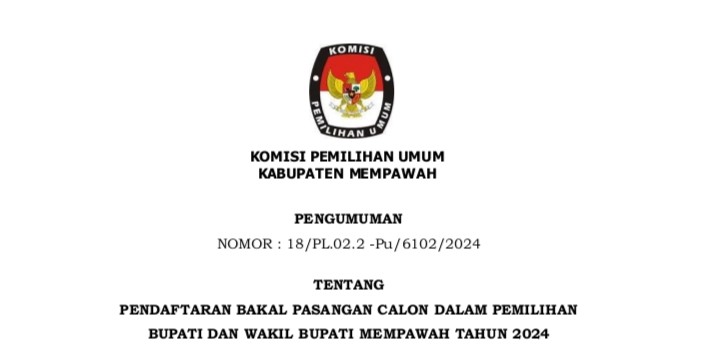 #TemanPemilih, Berikut Kami sampaikan pengumuman Pendaftaran Bakal Pasangan Calon Dalam Pemilihan Bupati dan Wakil Bupati Mempawah Tahun 2024: