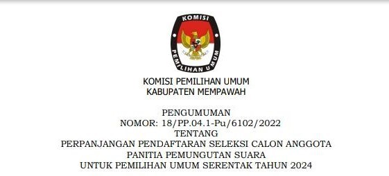 Pengumuman Perpanjangan Pendaftaran seleksi Calon Anggota Panitia Pemungutan Suara (PPS) untuk Pemilihan Umum Serentak Tahun 2024 Lihat Disini