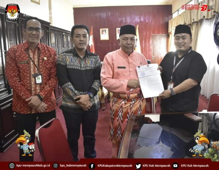 KPUMempawah-Ketua dan Anggota Komisi Pemilihan Umum (KPU) Kabupaten Mempawah bersama Kasubbag Teknis Pemilu dan Hubungan Partisipasi Masyarakat (TPP dan Parhupmas) melakukan penyampaian daftar calon legislatif (caleg) terpilih anggota Dewan Perwakilan Rakyat Daerah (DPRD) Kabupaten Mempawah hasil Pemilu 2024.