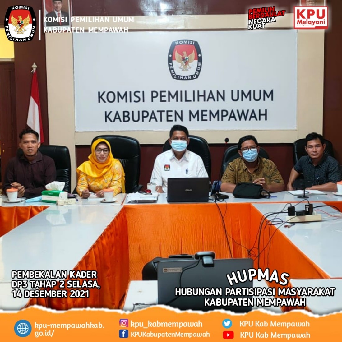 Selasa, 14 Desember 2021, Komisi Pemilihan Umum Kabupaten Mempawah mengikuti undangan KPU Provinsi Kalimantan Barat dengan agenda Perbekalan Kader Desa Peduli Pemilu dan Pemilihan (DP3) Tahap II Pada Lokus Desa Rasau Jaya Tiga Kecamatan Rasau Jaya Kabupaten Kuburaya dan Desa Wajok Hulu Kecamatan Siantan Kabupaten Mempawah melalui Zoom meeting online. Kegiatan ini dihadiri oleh KPU Kabupaten Mempawah dan Kader DP3 Desa Wajok Hulu, KPU kabupaten Kubu Raya dan Kader DP3 Desa Rasau Jaya Tiga. Pemateri kegiatan ini adalah, Dr.Erdi, M.SI Akademisi Universitas Tanjungpura, Zainab, S.P.,M.P anggota KPU Kalbar Divisi Perencanaan Data dan Informasi, dan Reinardo Sinaga, Presidium, Hoax Crisis Center Borneo.