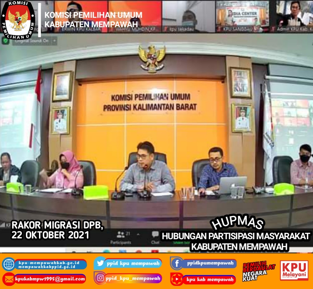 Jum'at, 22 Oktober 2021, KPU Kabupaten Mempawah mengikuti Undangan KPU Provinsi Kalimantan Barat dalam rangka Rapat Koordinasi Migrasi Daftar Pemilih Berkelanjutan bersama 14 KPU Kabupaten/Kota.