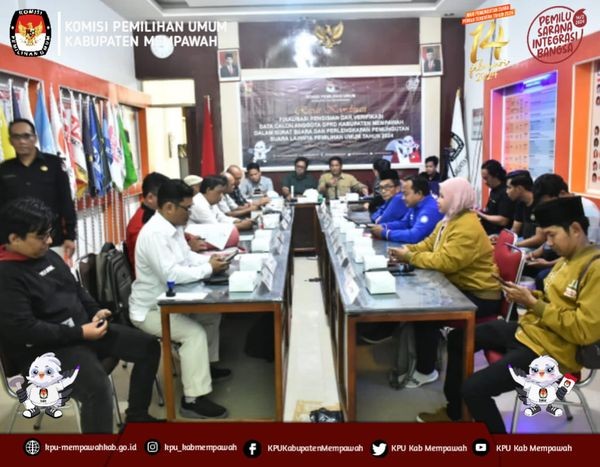 KPUMempawah-Komisi Pemilihan Umum (KPU) Kabupaten Mempawah melaksanakan Rapat Koordinasi Finalisasi Pengisian dan Verifikasi Data Calon Anggota DPRD Kabupaten Mempawah dalam surat suara dan perlengkapan pemungutan suara lainnya Pemilihan Umum Tahun 2024, bertempat di Aula Kantor KPU Kabupaten Mempawah, Rabu, (1/11/2023).