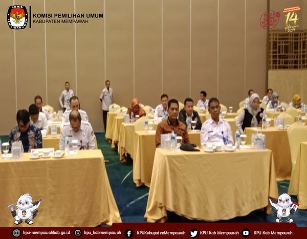 KPUMempawah-Ketua Komisi Pemilihan Umum (KPU) Kabupaten Mempawah, M. Agoes Soesanto, Sekretaris KPU Kabupaten Mempawah dan Kasubbag Keuangan, Umum, dan Logistik (Eldeni dan Tedy Cahyadi), menghadiri Undangan KPU Provinsi Kalimantan Barat, di Hotel Swiss Bellin Singkawang, dalam rangka Rapat Koordinasi Layanan Umum dan Persiapan Tahapan Logistik Pemilu Tahun 2024, Kamis (20/7/2023).