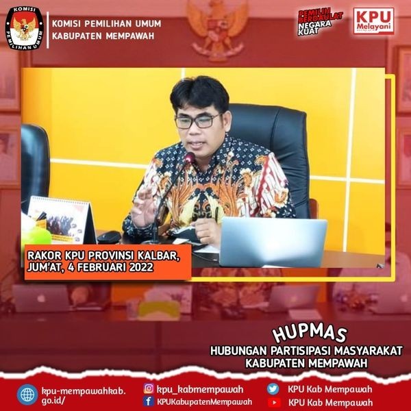 KPUMempawah-Komisi Pemilihan Umum Kabupaten Mempawah Mengikuti undangan Rapat Koordinasi Pemutakhiran Data Pemilih Berkelanjutan oleh 14 Kabupaten/Kota se-Kalbar secara daring Pada Jum'at, (4/02/2022).
