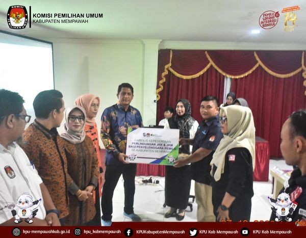 Rapat dibuka oleh Ketua KPU Kabupaten Mempawah Bapak Muhammad Agoes Soesanto, SH. Dalam kesempatan ini dilaksanakan pula penyerahan simbolis kepesertaan perlindungan JKK & JKM bagi penyelenggara Pemilu se-Kabupaten Mempawah oleh Pemerintah Kabupaten Mempawah diwakili Staf Ahli Bupati Bidang Politik, Hukum dan Pemerintahan Ibu Hj. Kurdiah, SH. M.Si. Selanjutnya penyampaian Materi oleh Anggota KPU Kabupaten Mempawah Ibu Munawaroh, S.Pd pengampu Divisi Sosdiklih, Partisipasi Masyrakat dan SDM.