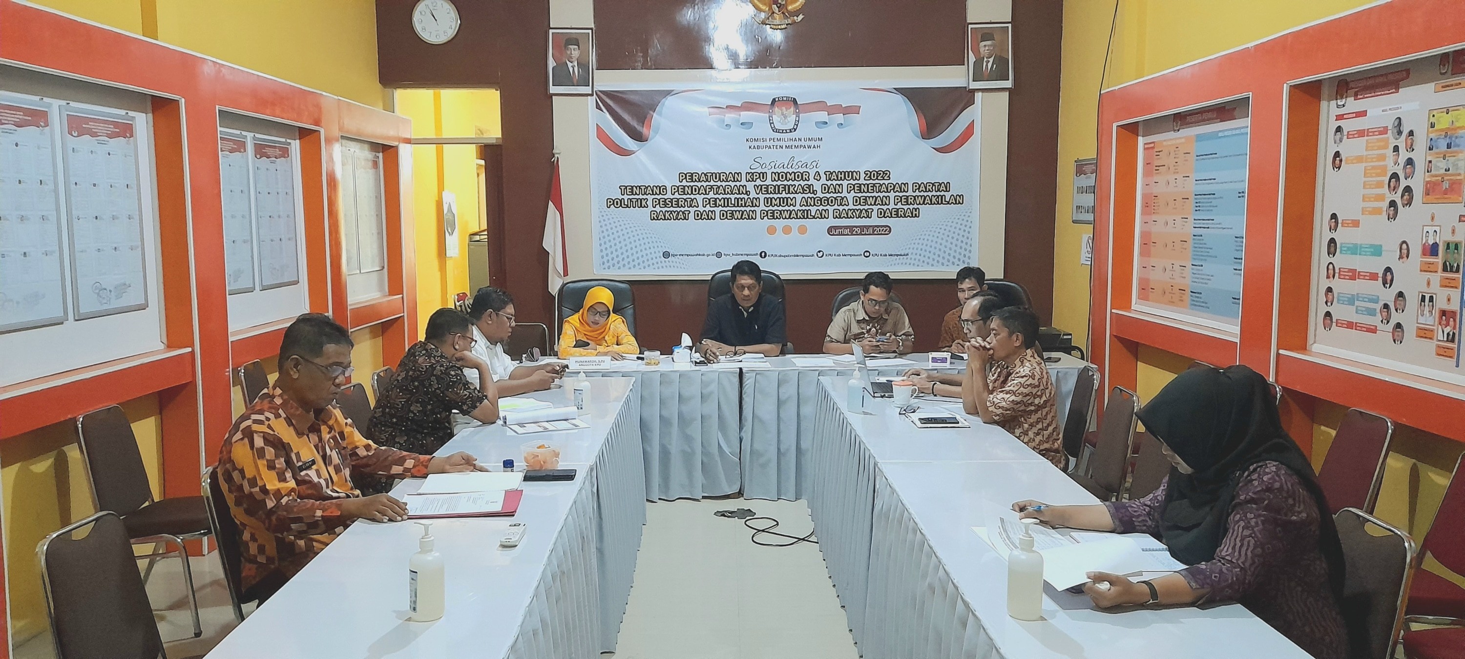Rapat dipimpin oleh Ketua KPU Kabupaten Mempawah, Bapak Muhammad Agoes Soesanto, SH dan dihadiri oleh seluruh Komisioner KPU Kabupaten Mempawah, Sekretaris dan Jajaran Kasubbag di Lingkungan Sekretariat KPU Kabupaten Mempawah.
