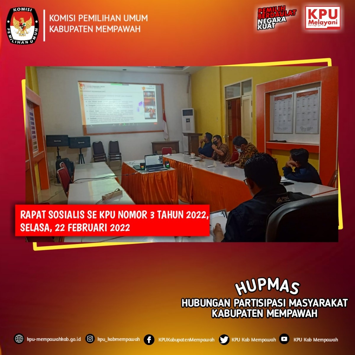 KPU Mempawah-KPU Kabupaten Mempawah mengikuti Undangan KPU RI secara Daring, Rapat Sosialisasi SE KPU RI Nomor 3 Tahun 2022 tentang Penerapan Kebijakan Manajemen Keamanan Informasi Bersama KPU Provinsi/KIP Aceh dan KPU/KIP Kabupaten/Kota, (Selasa, 22/02/2022).