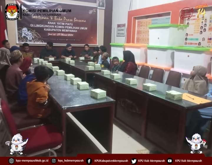 KPU Kabupaten Mempawah Melaksanakn kegiatan "Santunan dan Buka Puasa Bersama Anak Yatim di Lingkungan KPU Kabupaten Mempawah", Jumat (29/3/2024).