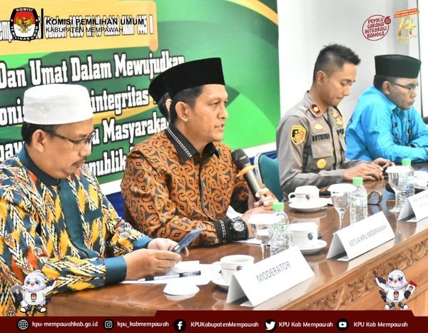 KPUMempawah-Ketua dan Anggota KPU Kabupaten Mempawah (M. Agoes Soesanto dan Munawaroh) menghadiri undangan DPD MUI Kalbar dalam kegiatan Silaturahim dan Deklarasi Pemilu Damai DPD MUI Kabupaten Mempawah Bersama Pimpinan Ormas Islam dan Pemuka Agama Islam di Rumah Budaya Melayu, Selasa (25/10/2023), dengan Tema: Peran Ulama dan Umat dalam mewujudkan Pemilu Damai, Harmonis dan Berintegritas Tahun 2024 di Kabupaten Mempawah Menuju Masyarakat Madani dalam Negara Kesatuan Republik Indonesia.