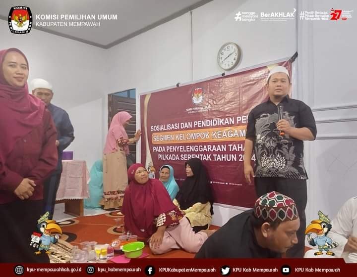 KPUMempawah-Komisi Pemilihan Umum (KPU) Kabupaten Mempawah kembali menggelar kegiatan sosialisasi dan pendidikan pemilih, kali ini ditujukan bagi segmen keagamaan dalam rangkaian tahapan Pilkada Serentak 2024. Acara ini berlangsung di Gg. Al-Jabar Kelurahan Tengah Kecamatan Mempawah Hilir dengan melibatkan tokoh agama dan masyarakat setempat.