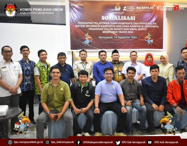 KPUMempawah-Dalam rangka memasuki tahapan Dana Kampanye Pemilihan Kepala Daerah (Pilkada) Serentak Tahun 2024, Komisi Pemilihan Umum (KPU) Kabupaten Mempawah menggelar Sosialisasi Persiapan Pelaporan Dana Kampanye pada Kamis, 19 September 2024.
