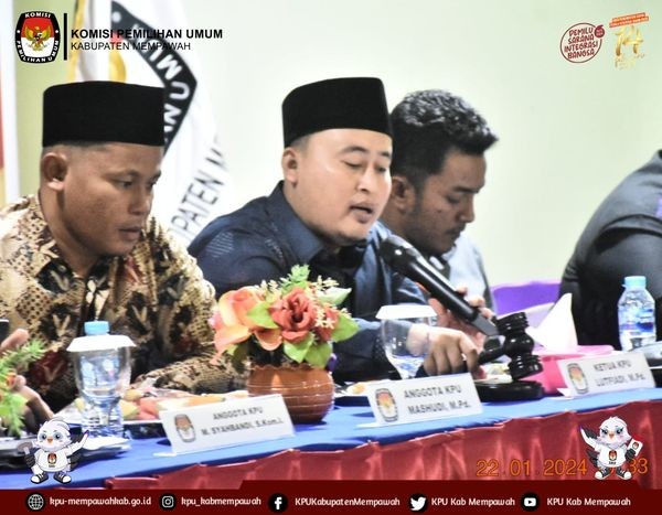 KPUMempawah-Dalam rangka persiapan menyambut Pemilu Tahun 2024, Komisi Pemilihan Umum (KPU) Kabupaten Mempawah menggelar kegiatan Training Of Trainers Fasilitator Panitia Pemilihan Kecamatan dalam bimbingan teknis KPPS untuk Pemilu Tahun 2024. Acara ini diselenggarakan di Hotel Wisata Nusantara Penibung, Kecamatan Mempawah Hilir pada hari Senin, 22 Januari 2024.