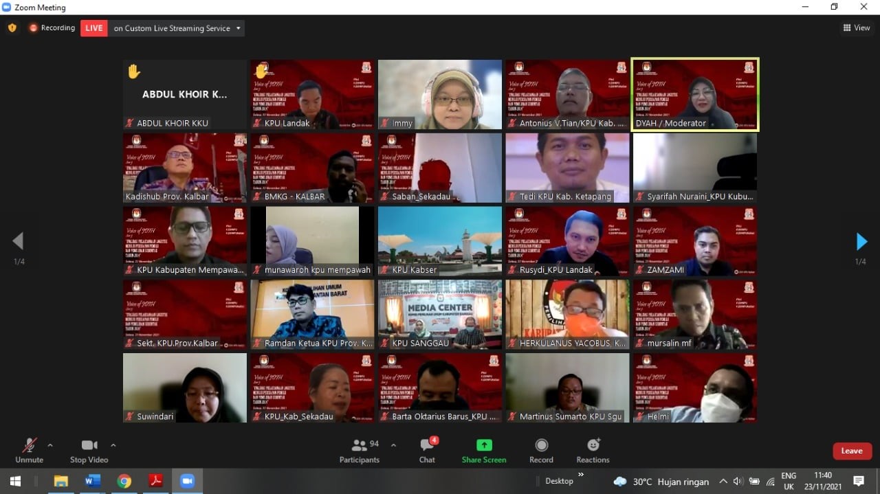 Selasa, 23 November 2021, KPU Kabupaten Mempawah mengikuti Webinar JDIH KPU Provinsi Kalbar, Voice of JDIH Seri 5, melalui Zoom Metting Online, dengan Tema "Evaluasi Pelaksanaan Logistik menuju Persiapan Pemilu dan Pemilihan Serentak Tahun 2024".