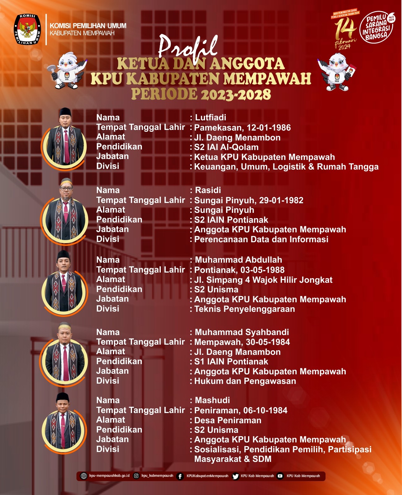 Profil Ketua dan Anggota KPU Kabupaten Mempawah Periode 2023-2028